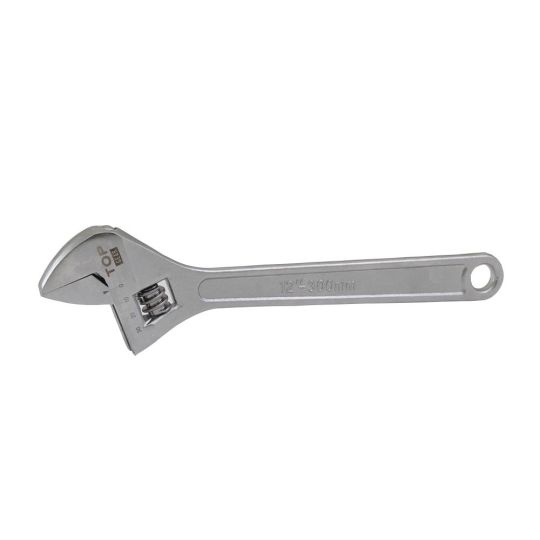 Verstellbarer Schraubenschlüssel mit polierten Backen. Mit Skalierung bis 32 mm. Länge: 300 mm.