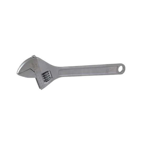 Verstellbarer Schraubenschlüssel mit polierten Backen. Mit Skalierung bis 50 mm. Länge: 450 mm.